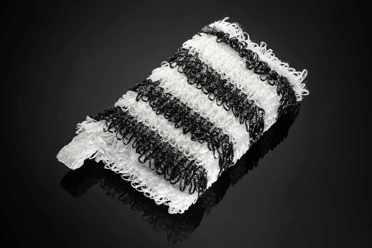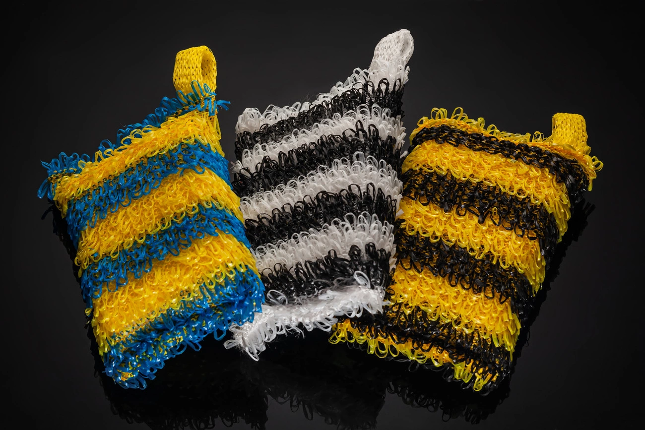 Бриз "BAND" - мочалка класичної форми і розмірів. Жаккард формується довгими петлями і виготовляється в одній комбінації поліпропіленових ниток з різними типами волокон, що в сукупності дозволяє робити "Бриз Band" тільки в ступенях жорсткості "Medium". Виріб має однотонну основу, жаккард сформований рівномірними смугами двох різних кольорів і випускається в безлічі різноманітних комбінаціях