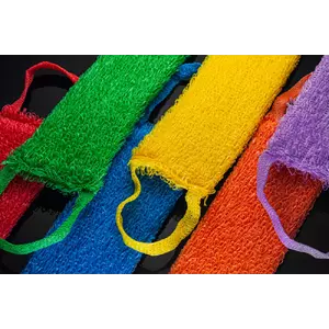 Люкс MAX - це довга мочалка з міцними, зручними ручками, за допомогою якої можна помити і промасажувати 100% поверхні тіла. Жаккард формується спрямованими в одну сторону, довгими петлями, які надають виробу ступінь жорсткості "Medium". Поролонова вставка вшивається всередину мочалки і займає весь її внутрішній простір. Завдяки цьому в процесі використання виходить пишна мильна піна.